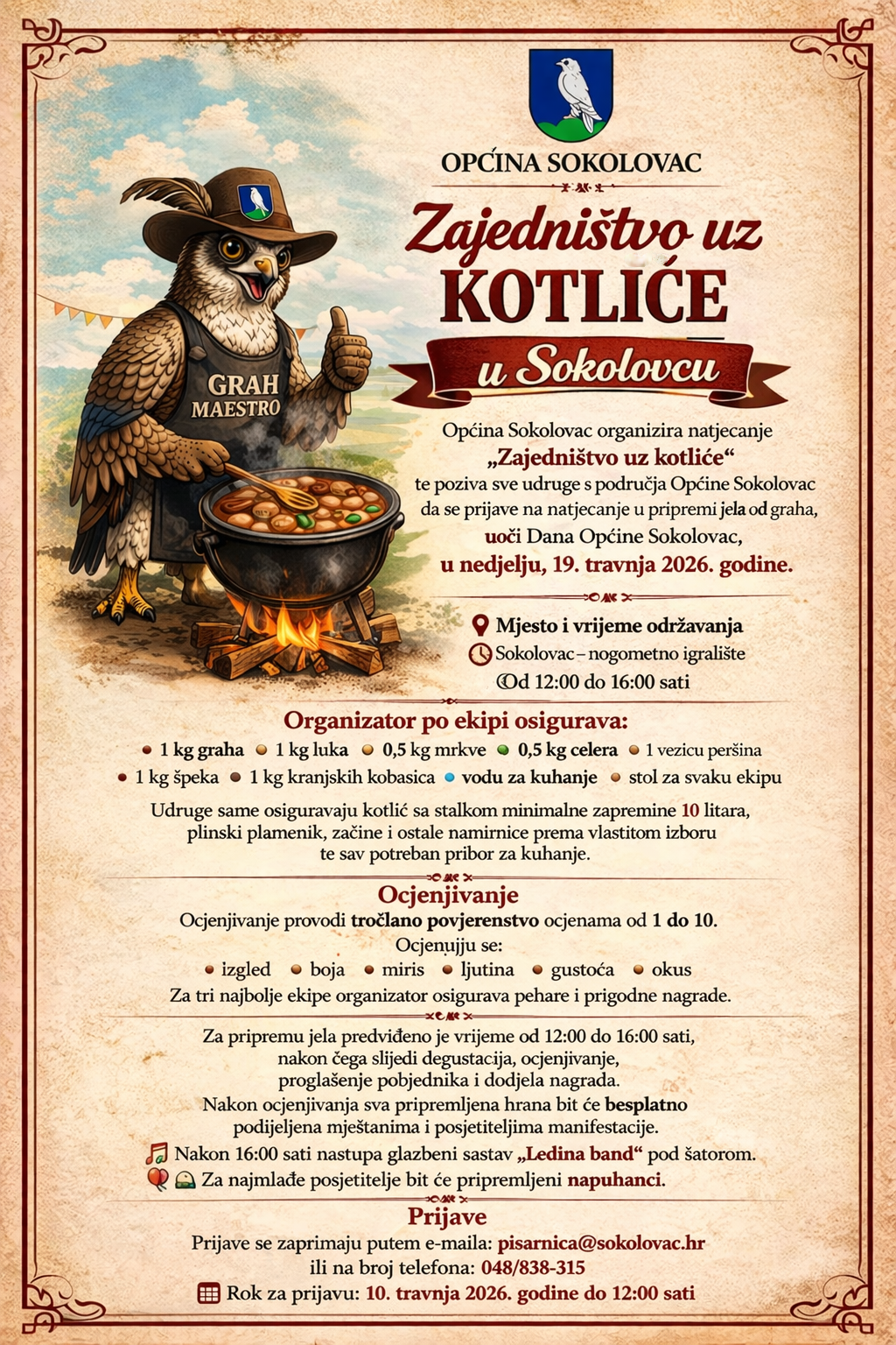 - popunjavanjem obrasca i slanjem istog na e-mail: pisarnica@sokolovac.hr